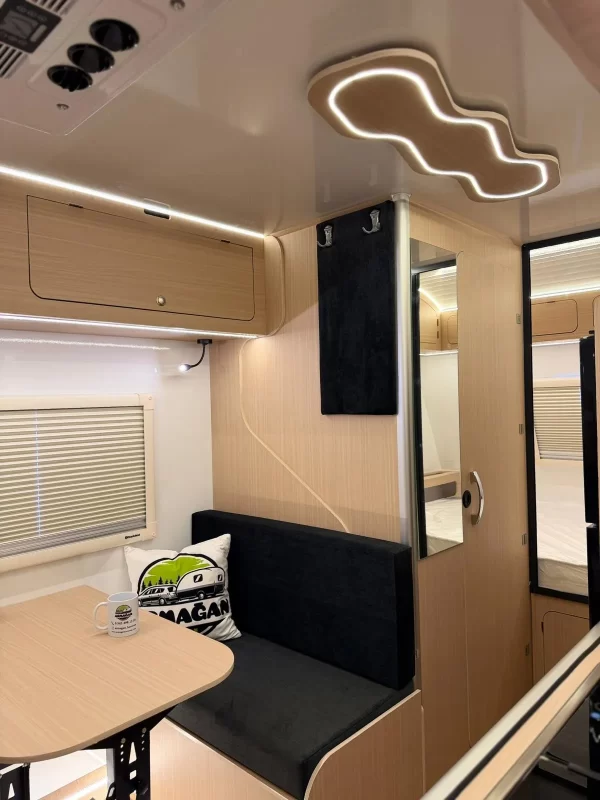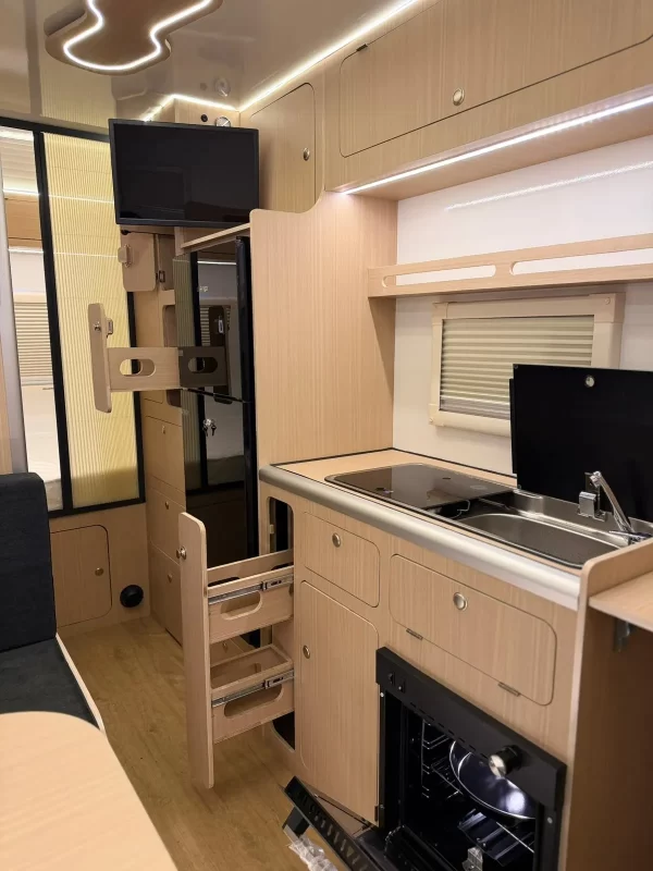 Solar enerji sistemi sayesinde Dominic 460, 7/24 ve 4 mevsim kesintisiz enerji sunar. Büyük yaşam alanı, konforlu tasarımı ve güçlü teknik donanımıyla Dominik 460, hem uzun hem de kısa süreli kamp deneyimlerinize mükemmel uyum sağlar.